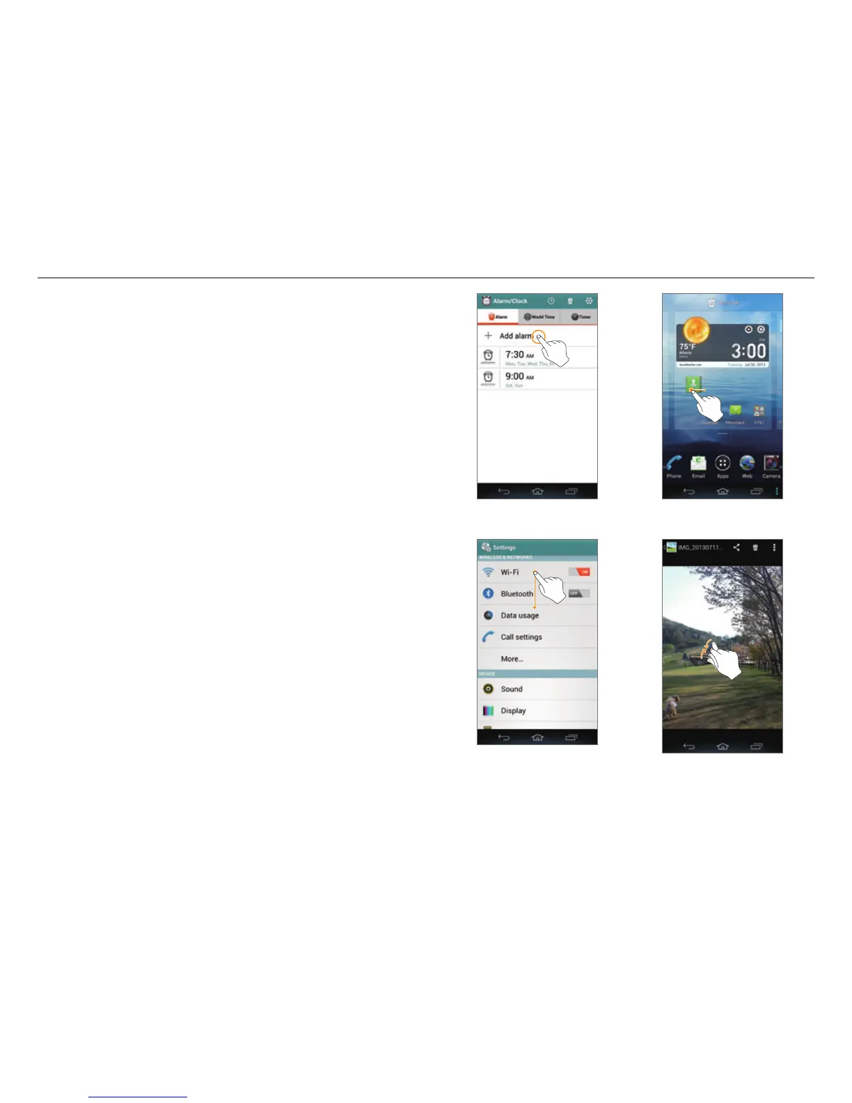 x Flick: Place a finger on the screen and slide it up, down, left,