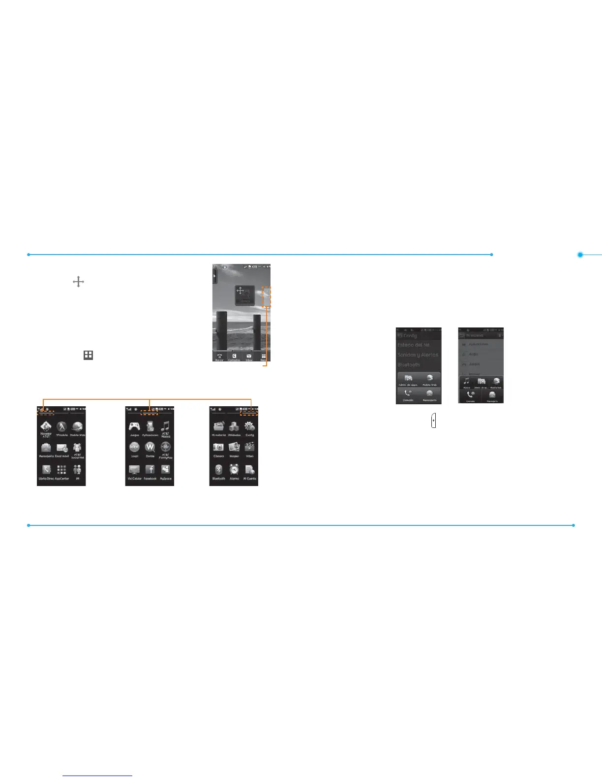 Mensajería, Mobile Web, Administrador de aplicaciones o Música.