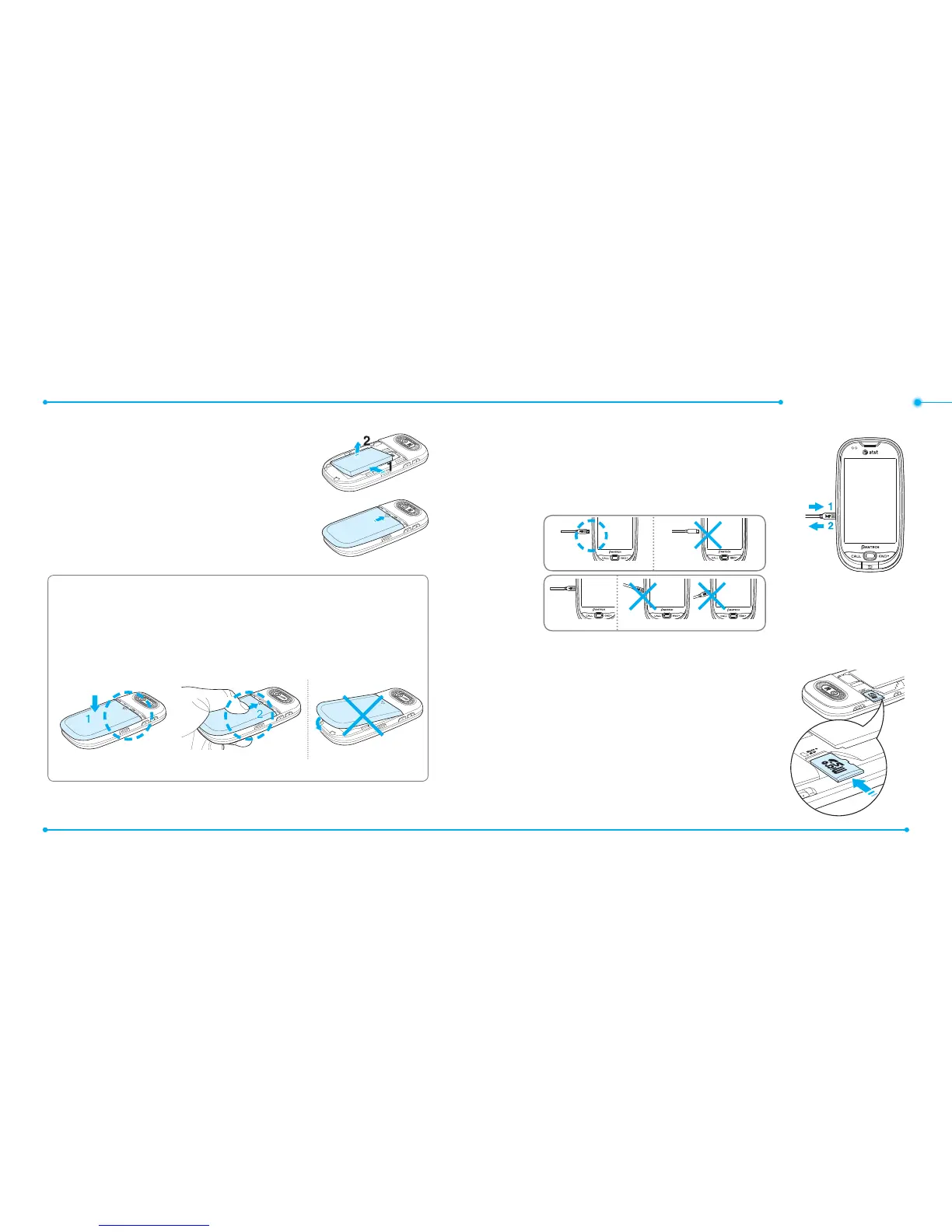 Put the cover align with the phone(1) and push up(2) as the arrow