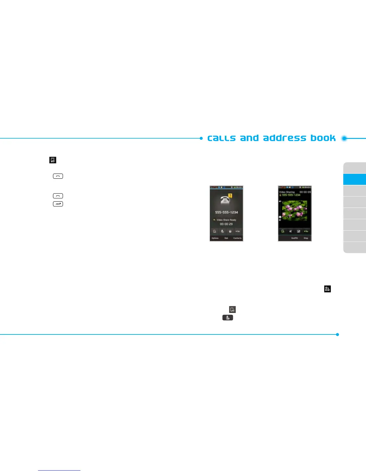 note: To use video share in the Recent Calls, tap number and .