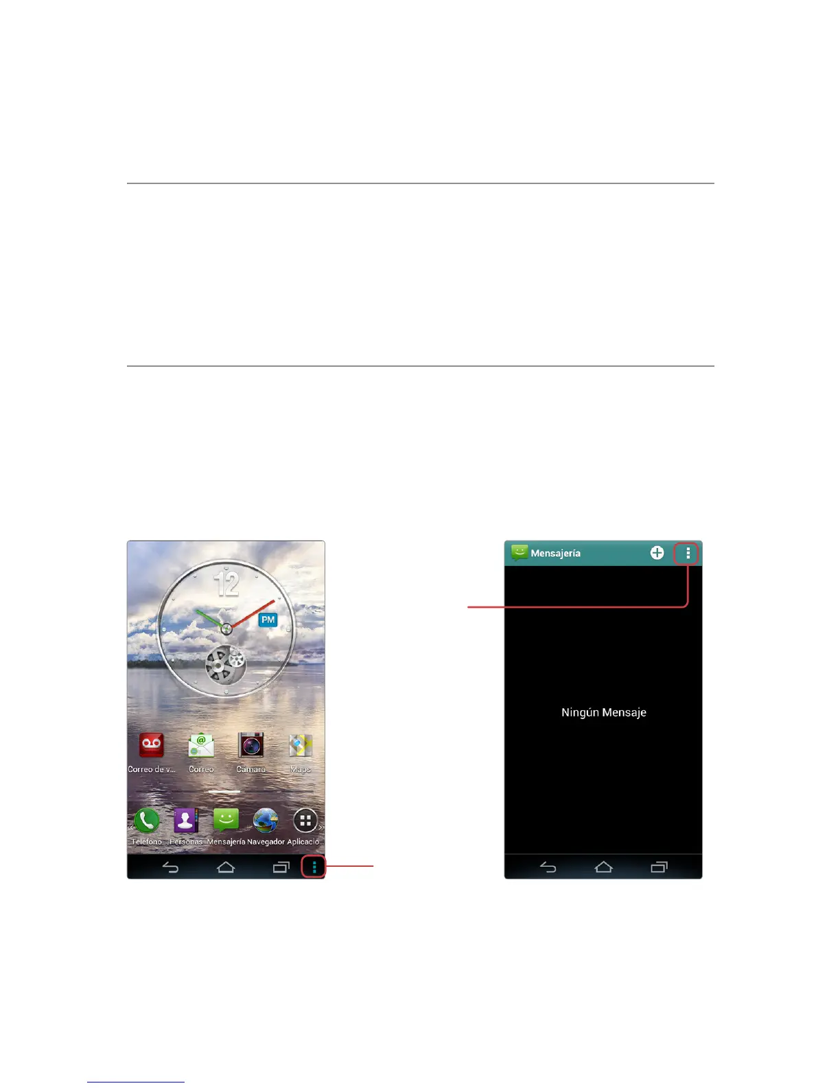 cuando un menú estuviere disponible. Cada aplicación y pantalla tiene un