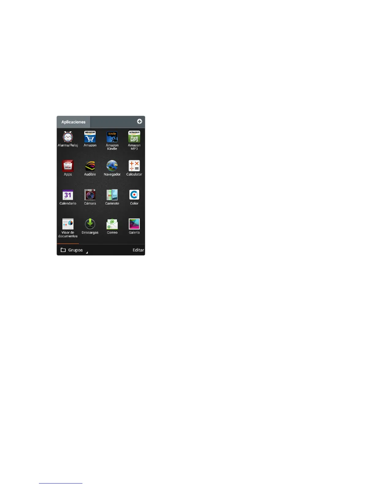 Toque en Aplicaciones en el Launcher para abrir la pantalla Aplicaciones. La