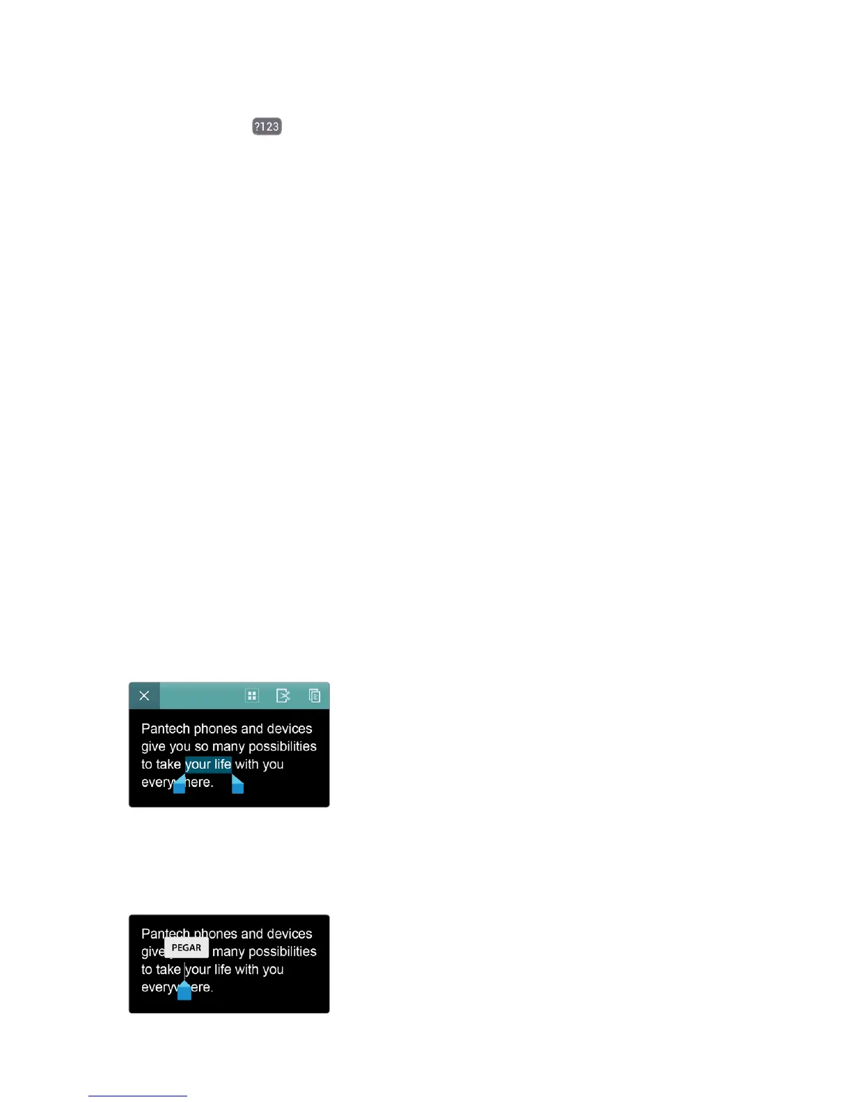 para seleccionar más o menos texto y enseguida toque en el icono de copia ~ o