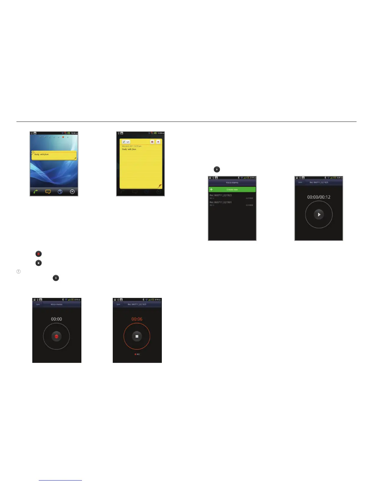 Note Once you have recorded a voice memo, the screen to play it