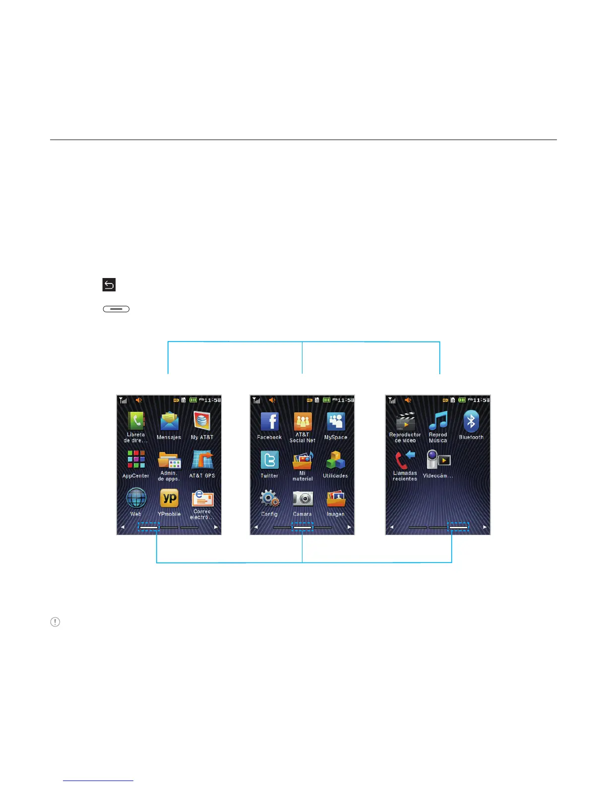 Nota Siempre se muestran los indicadores de posición de la pantalla de menú correspondiente.