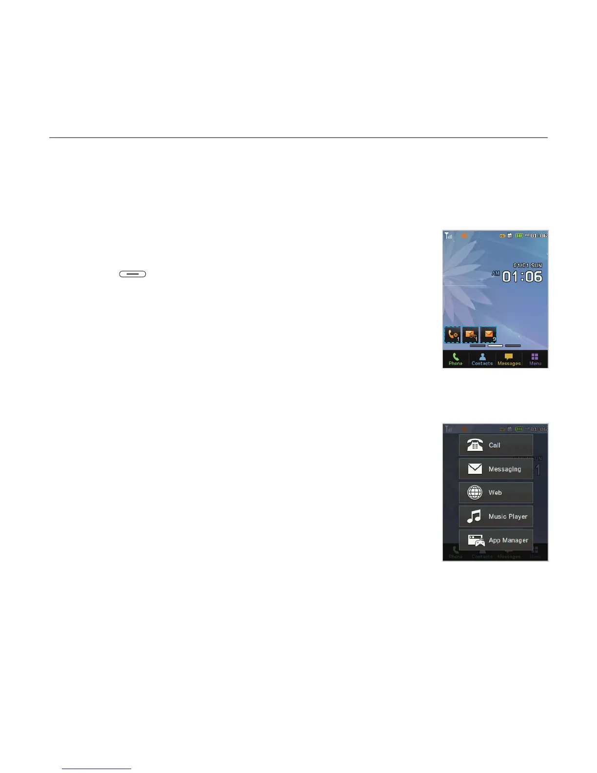 Call, Messaging, Web, Music Player, and App Manager. This key keeps