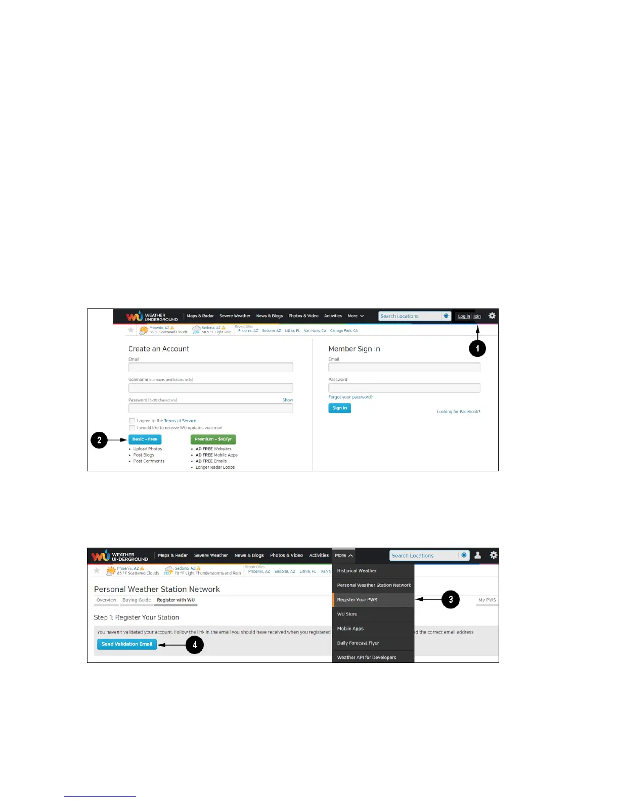 Visit Wunderground.com and select the Join link at the top of the page. Select the Free sign up