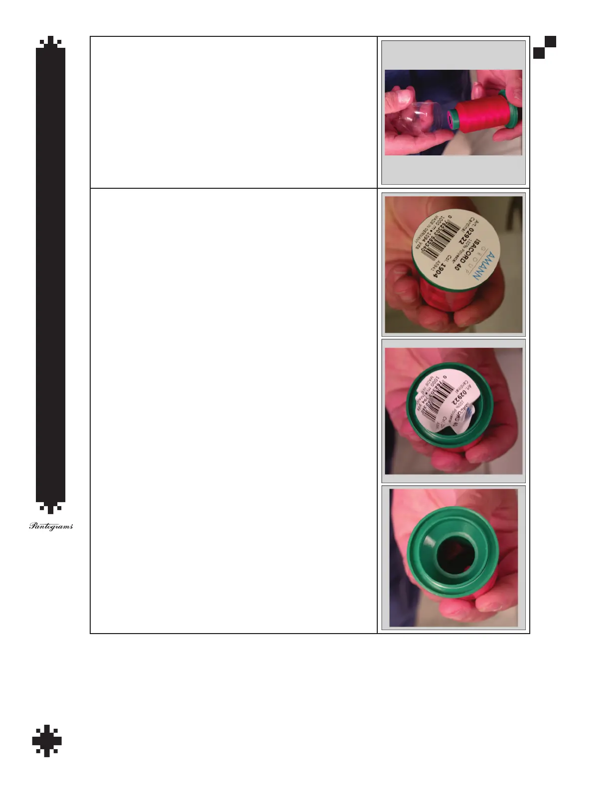 Remove the adhesive label from the bottom of the thread cone by
