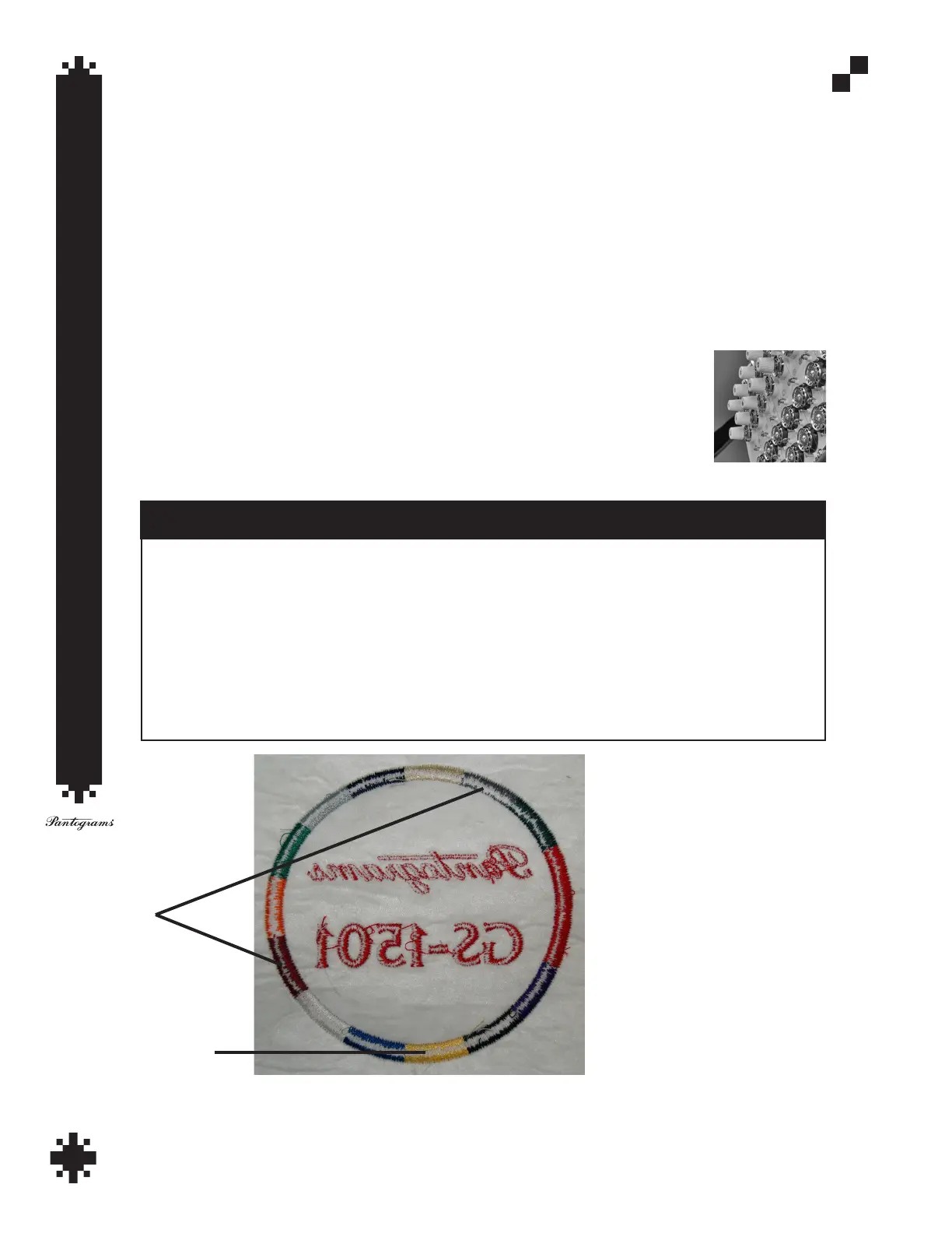 lizes all the needles on your machine. When nished, turn the embroidery over and look
