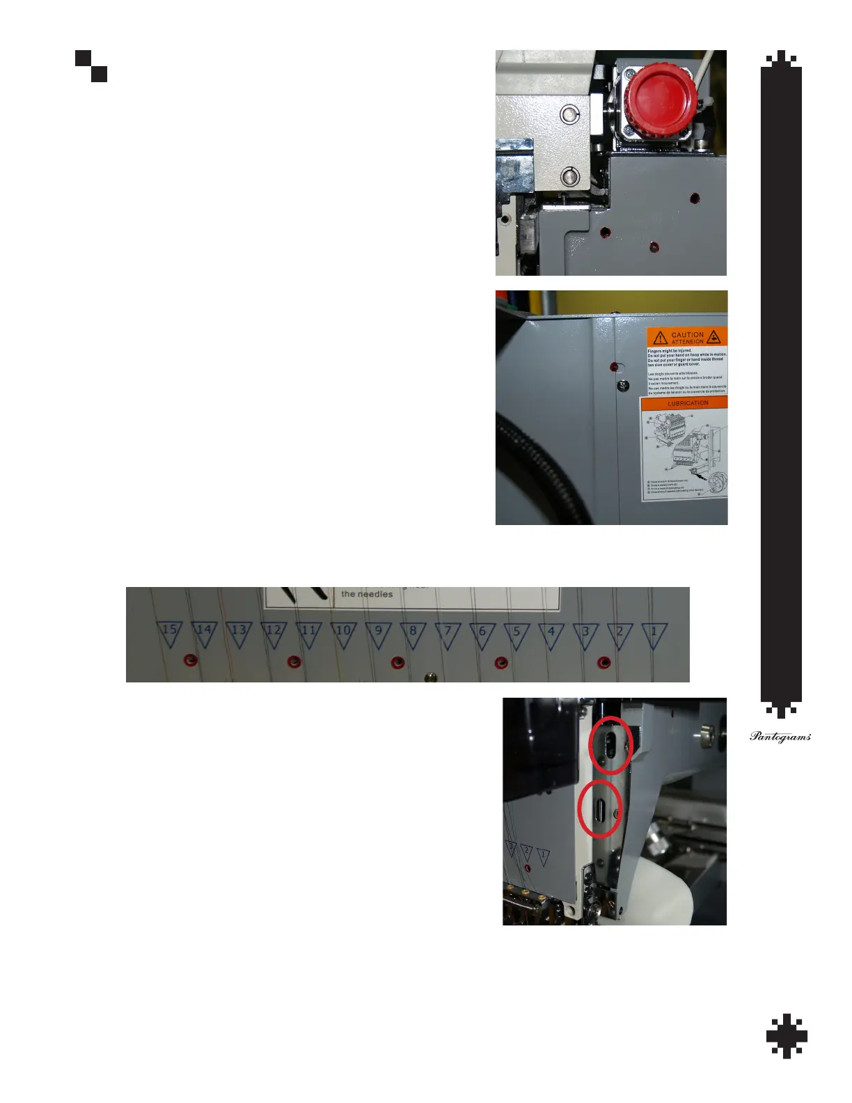 machine there are 3 oiling spots marked in red. Lubricate with a