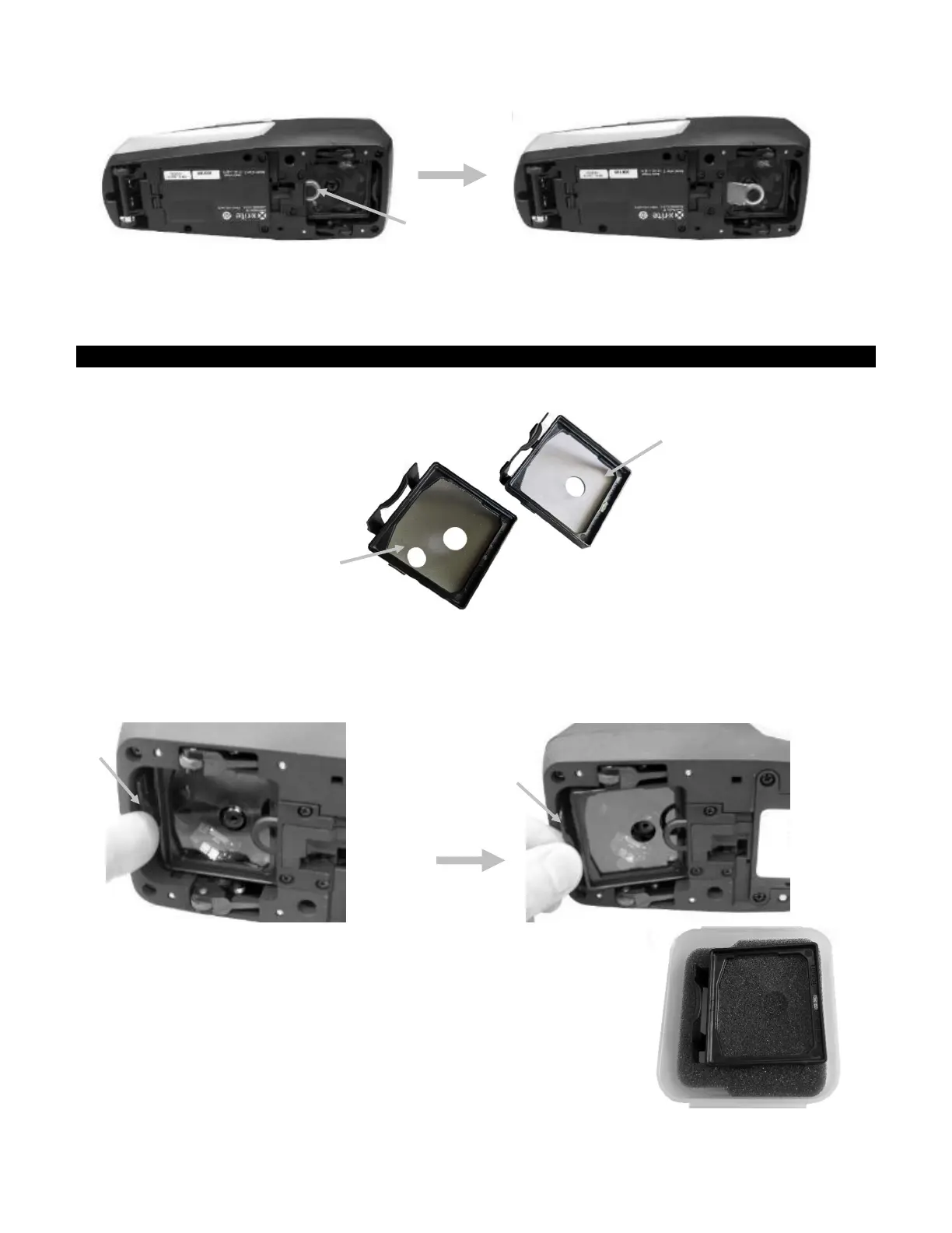 5. Place the removed filter glass into the storage case to protect it from
