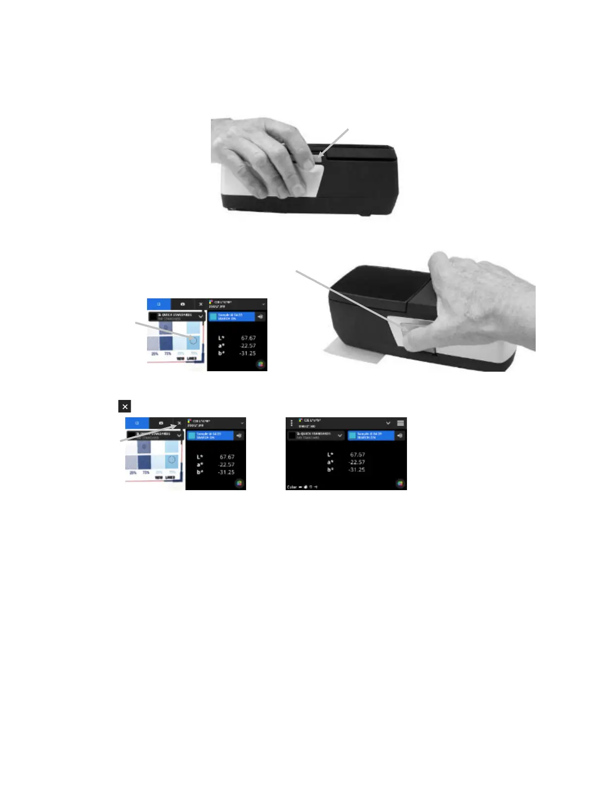 5. Press and hold the brake button. Roll the device over the sample until the area to measure is viewed within