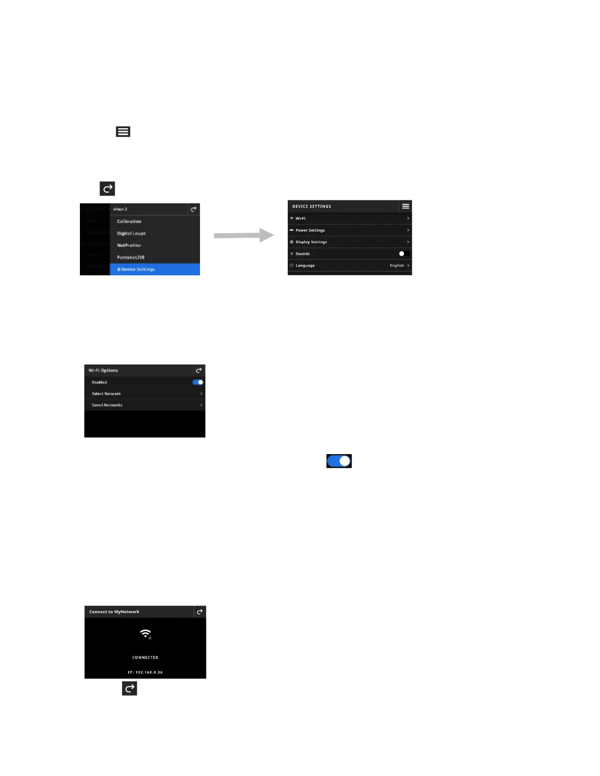 3. The device acquires the IP address from the network, and when successful shows Connected and the