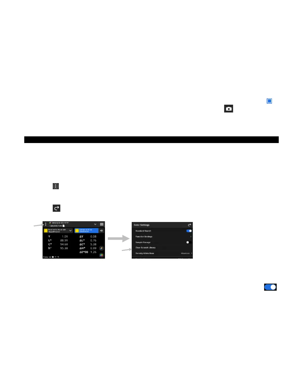 Standard search can only search for the closest standard in the selected color library. Tap the switch icon