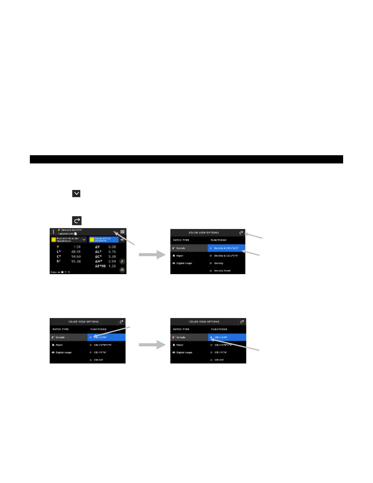 1. Tap the icon (1) next to the function name at the top of the screen to open the Color View Options.
