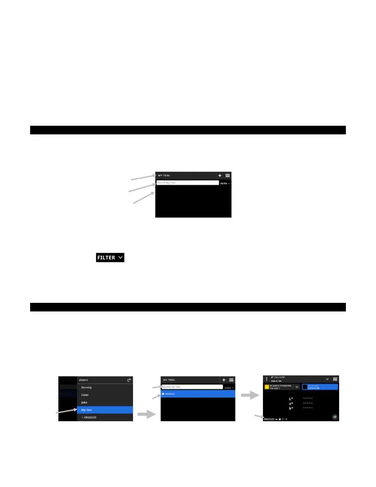 2. Tap the search field (2), enter the tool name using the virtual keyboard.