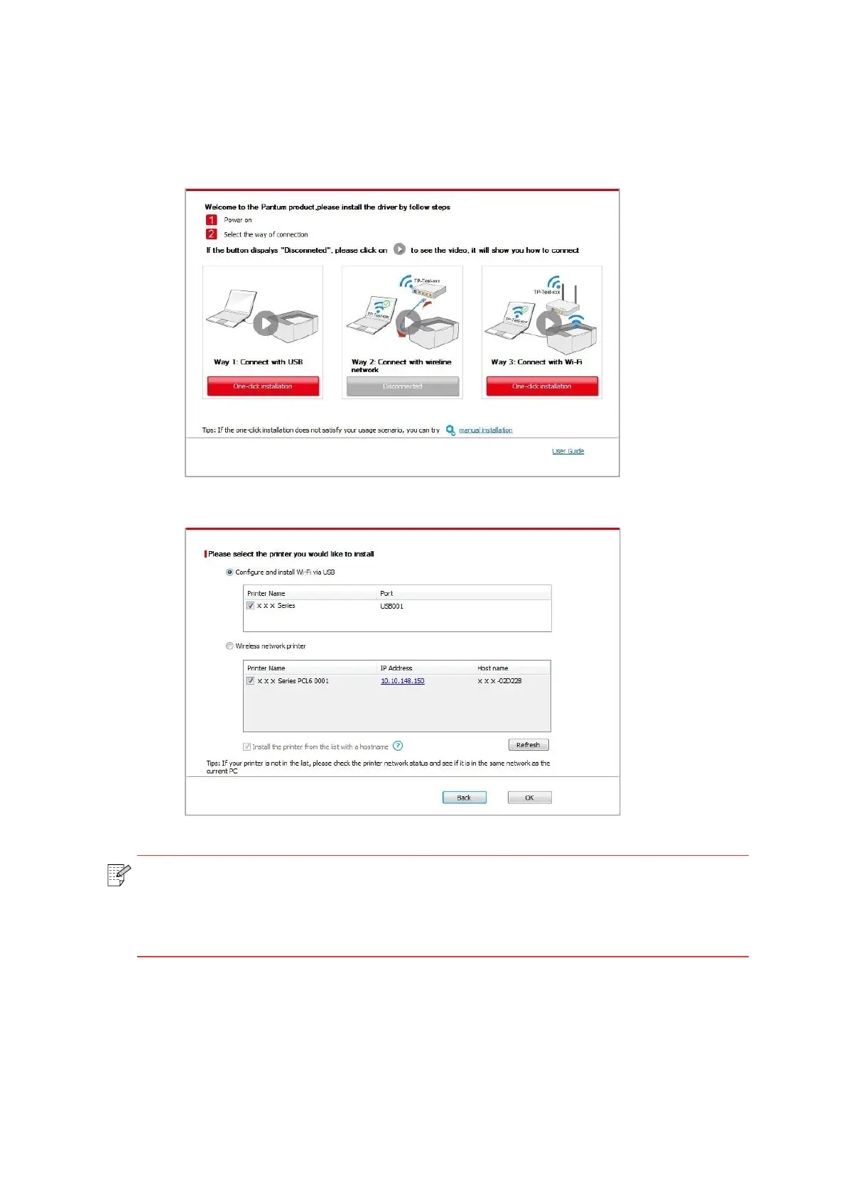 Note: • When the printer IP address changes under printer driver installed with host ID ,