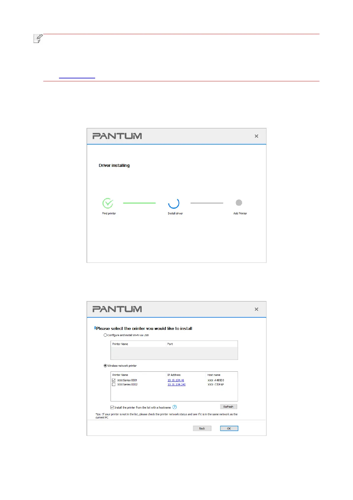 • If the Install Tool finds more than one printer, a printer list will pop up. Please select the printer you