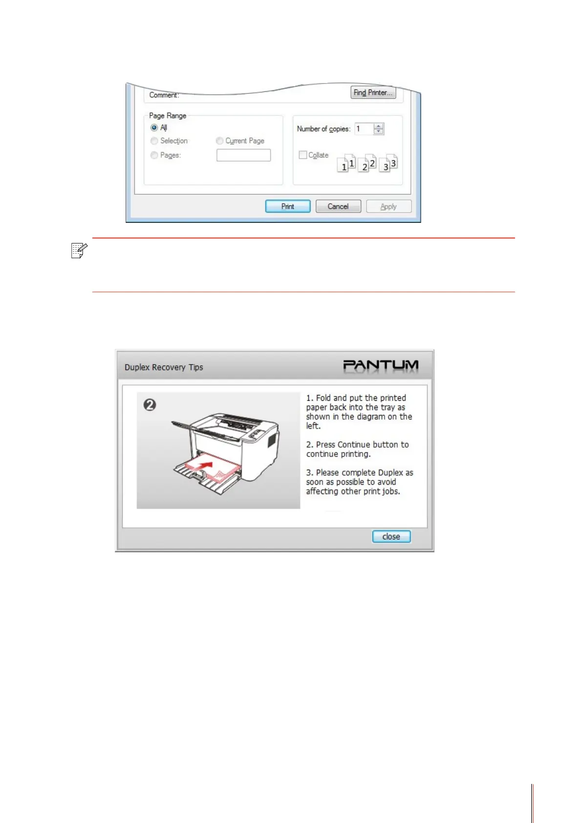e) Send the print job after choosing Manual Duplex, then the following prompt window will