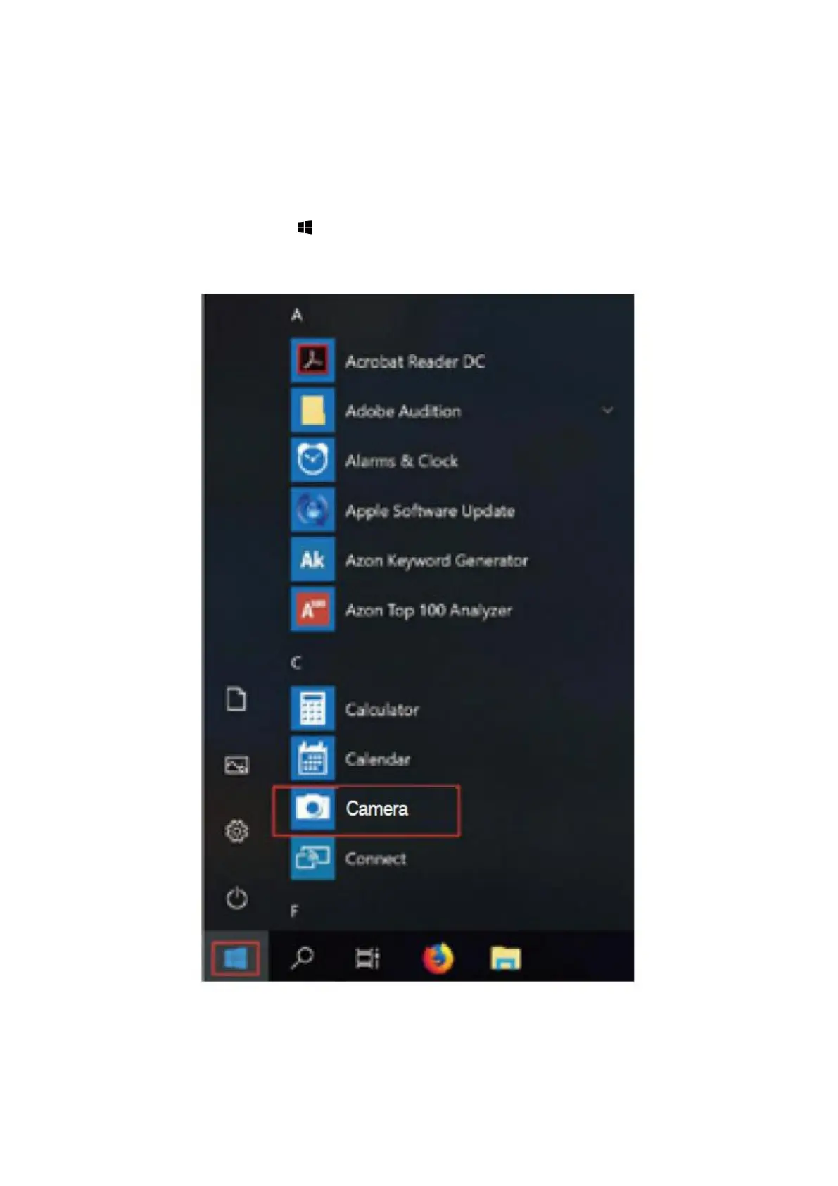 b) Stlačte tlačidlo Štart , a v zozname aplikácií vyberte “ Kamera” („Camera”).