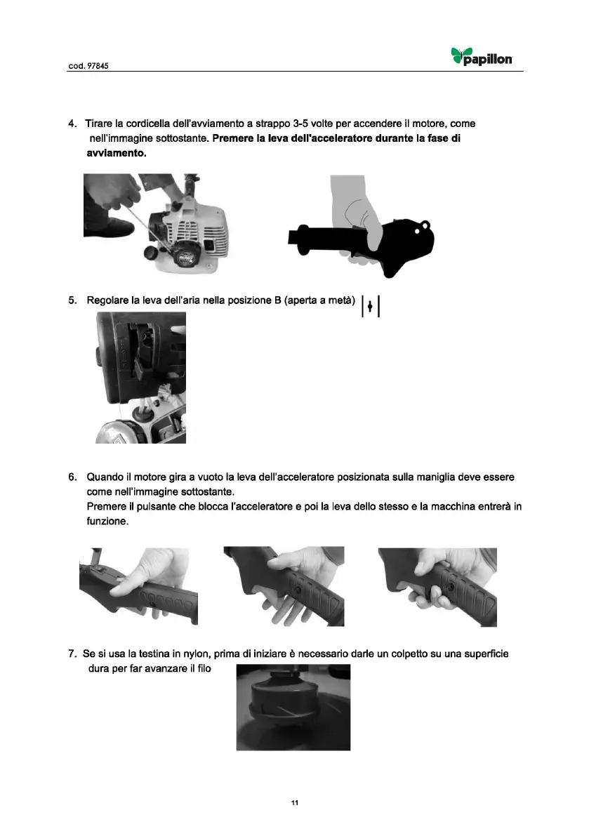 4. Tirare la cordicella dell'avviamento a strappo 3-5 volte per accendere ii motore, come