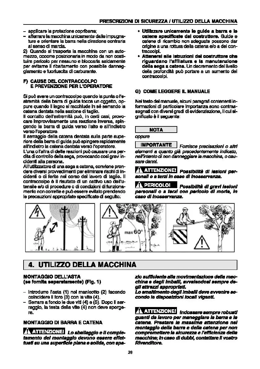 SICUREZZA I UTILIZZO DELLA MACCHINA