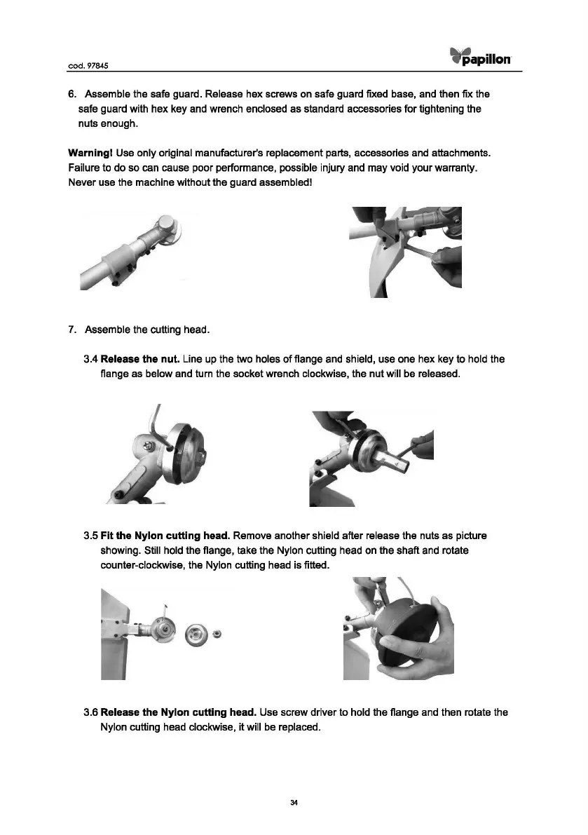 3.5 Fit the Nylon cutting head. Remove another shield after release the nuts