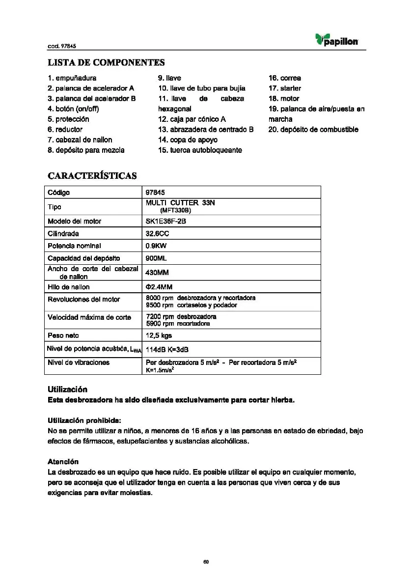 PAPILLON MULTICUTTER 33N - Page 60