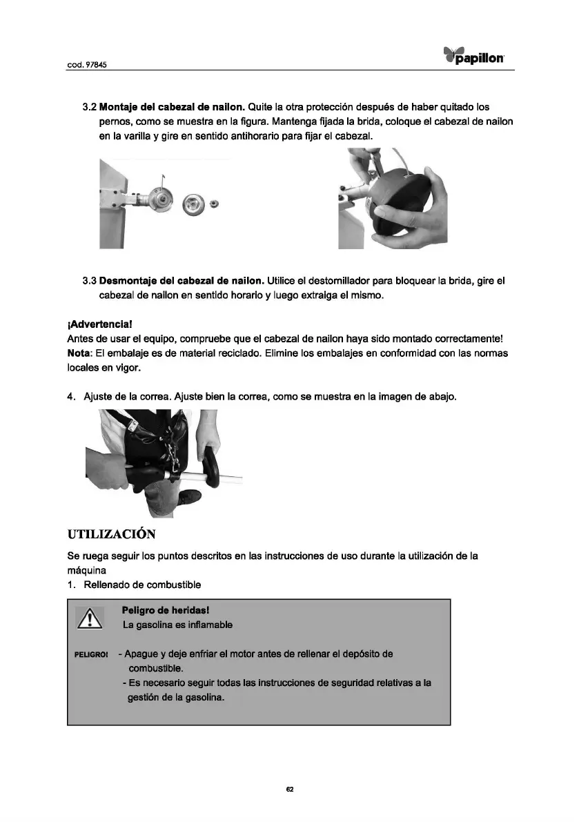 Antes de usar el equipo, compruebe que el cabezal de nailon haya sido montado correctamente!