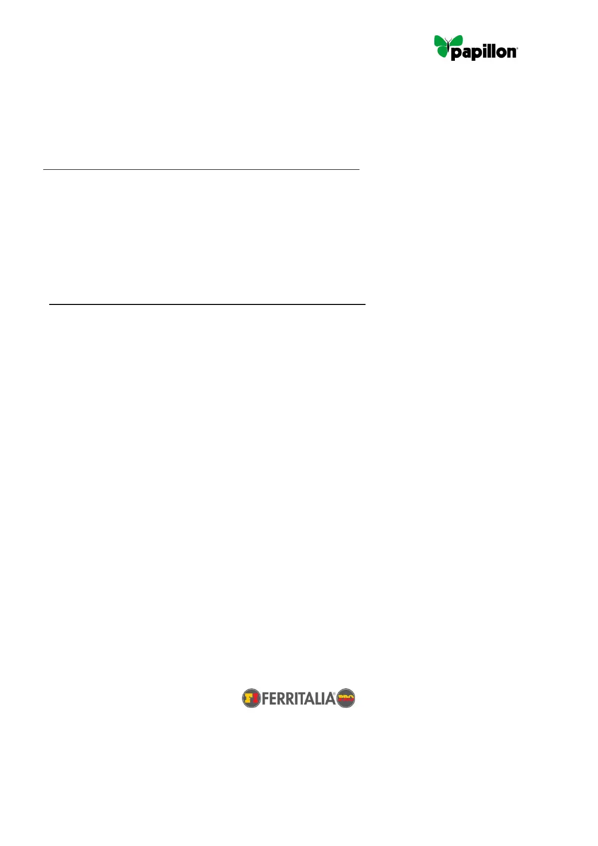 FERRITALIA Soc. Coop., distribuidor para Europa de los productos PAPILLON, declara que los productos