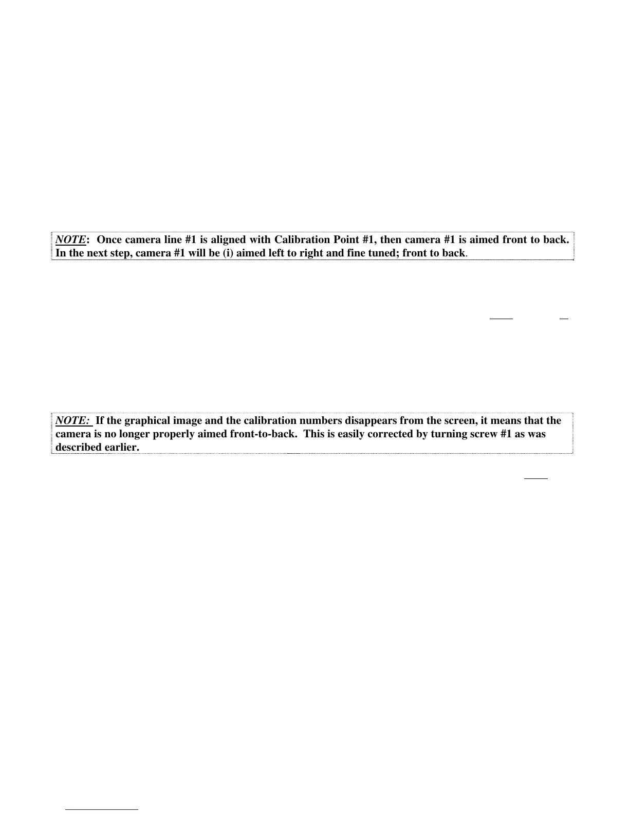: Once camera line #1 is aligned with Calibration Point #1, then camera #1 is aimed front to back.