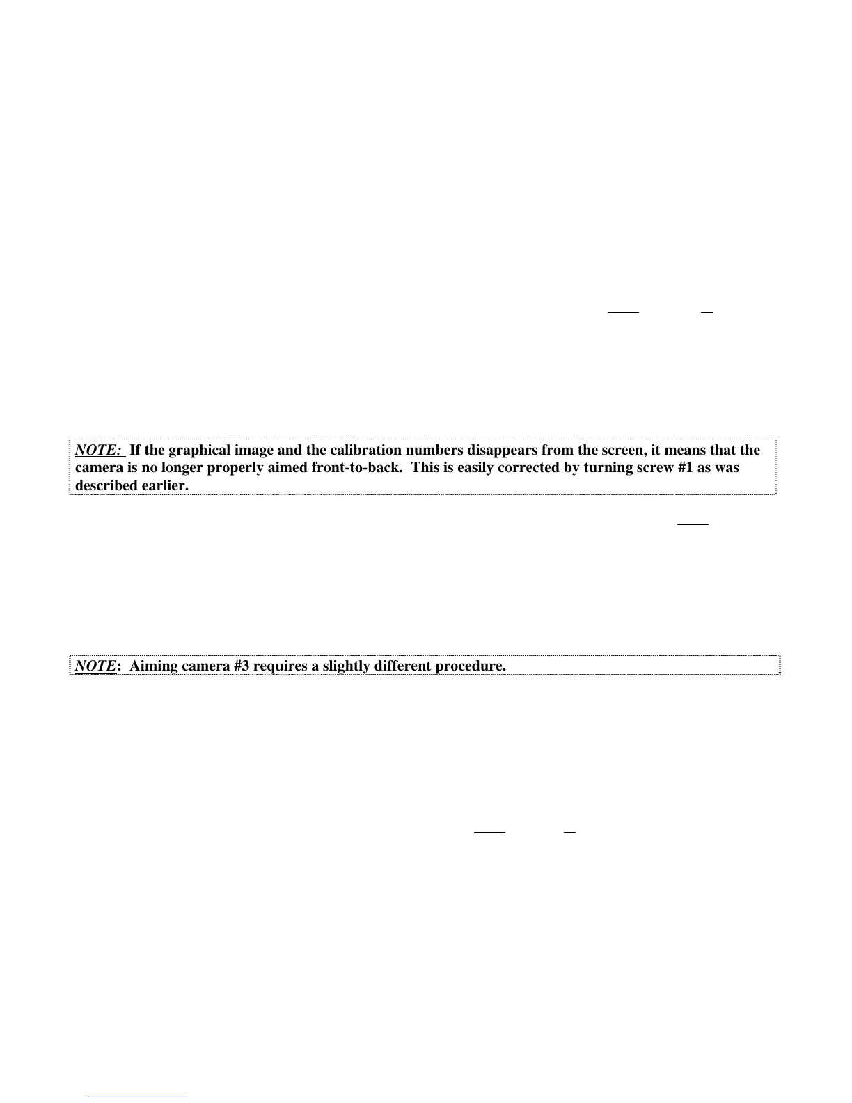 camera is no longer properly aimed front-to-back. This is easily corrected by turning screw #1 as was