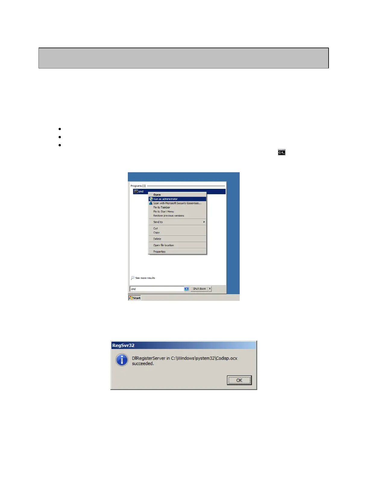4. Type "regsvr32 C:\Windows\system32\Codisp.ocx" in the command line, and then