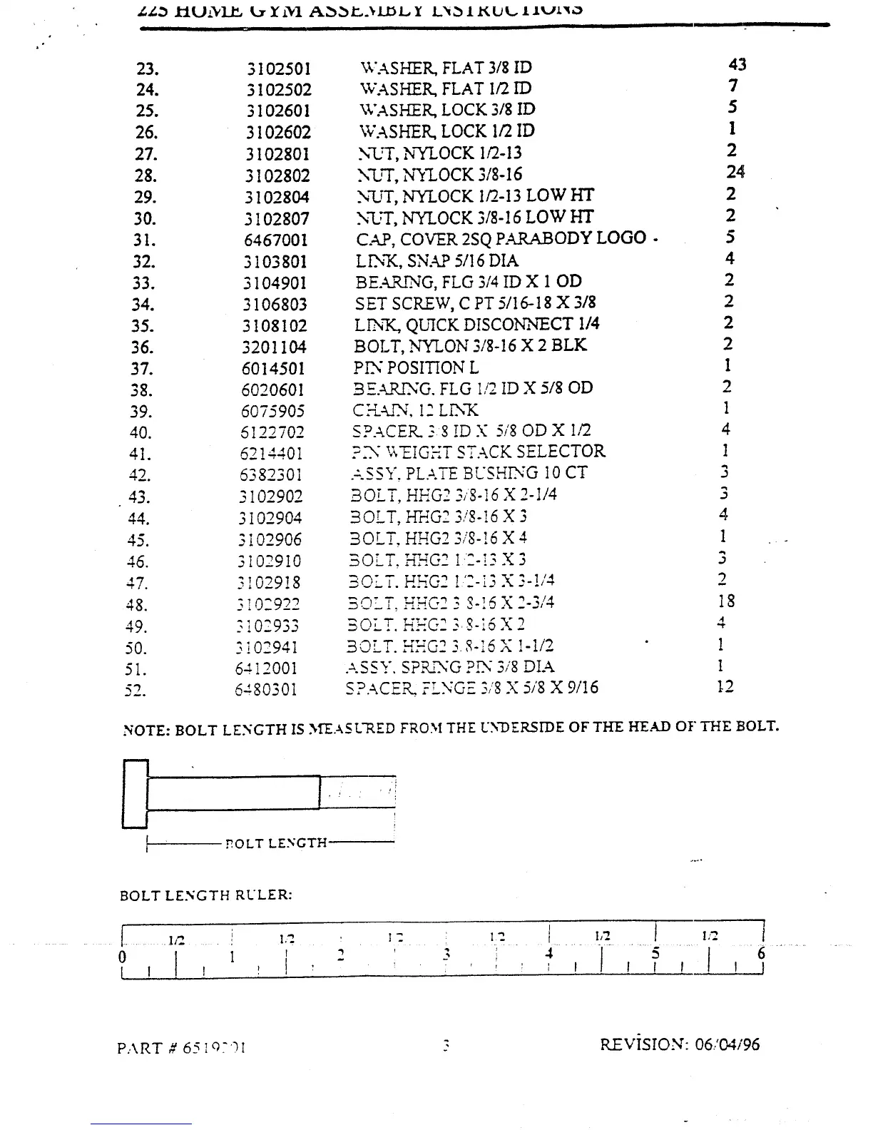 BOLT LENGTH RULER: