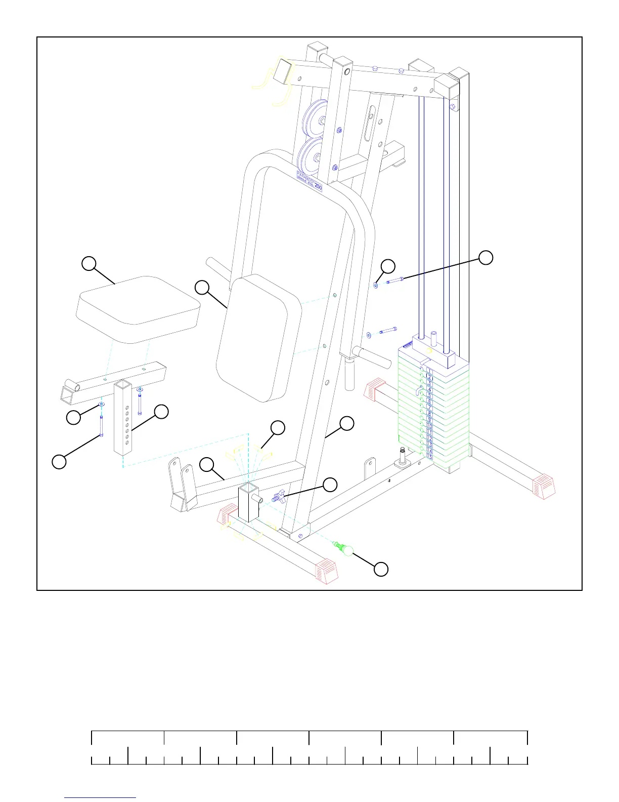 • Insert the PRESS SEAT ASSEMBLY into the FRONT UPRIGHT (2) as shown. The PRESS SEAT height can be adjusted using the