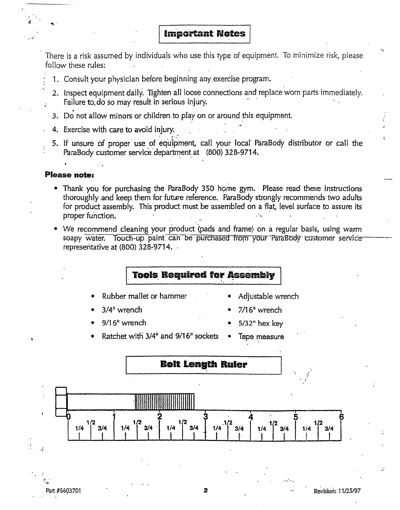 ¯ Thank you for purchasing the ParaBody 350 home gym. Please read the.,;e instructions