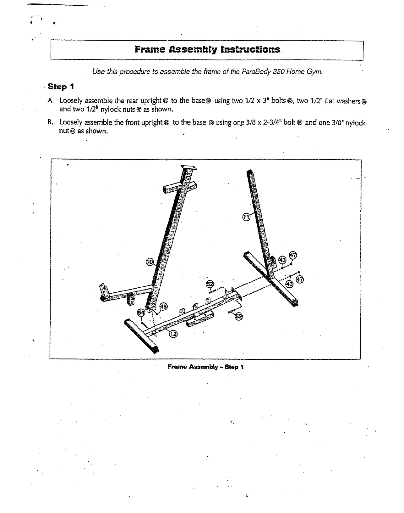 Use this procedure to assemble the frame of the ParaBod~v 350 Home Gym.