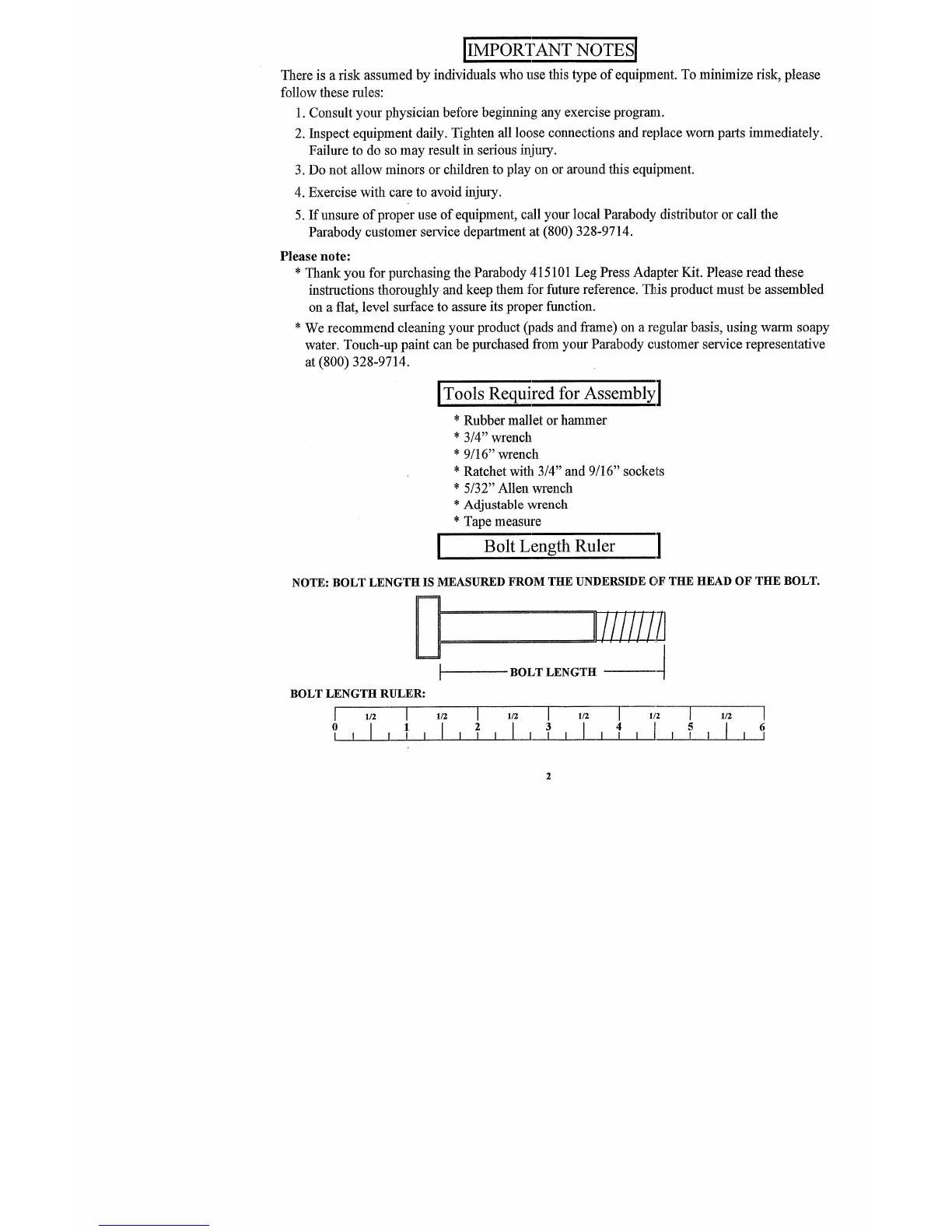 * Thank you for purchasing the Parabody 415101 Leg Press Adapter Kit. Please read these