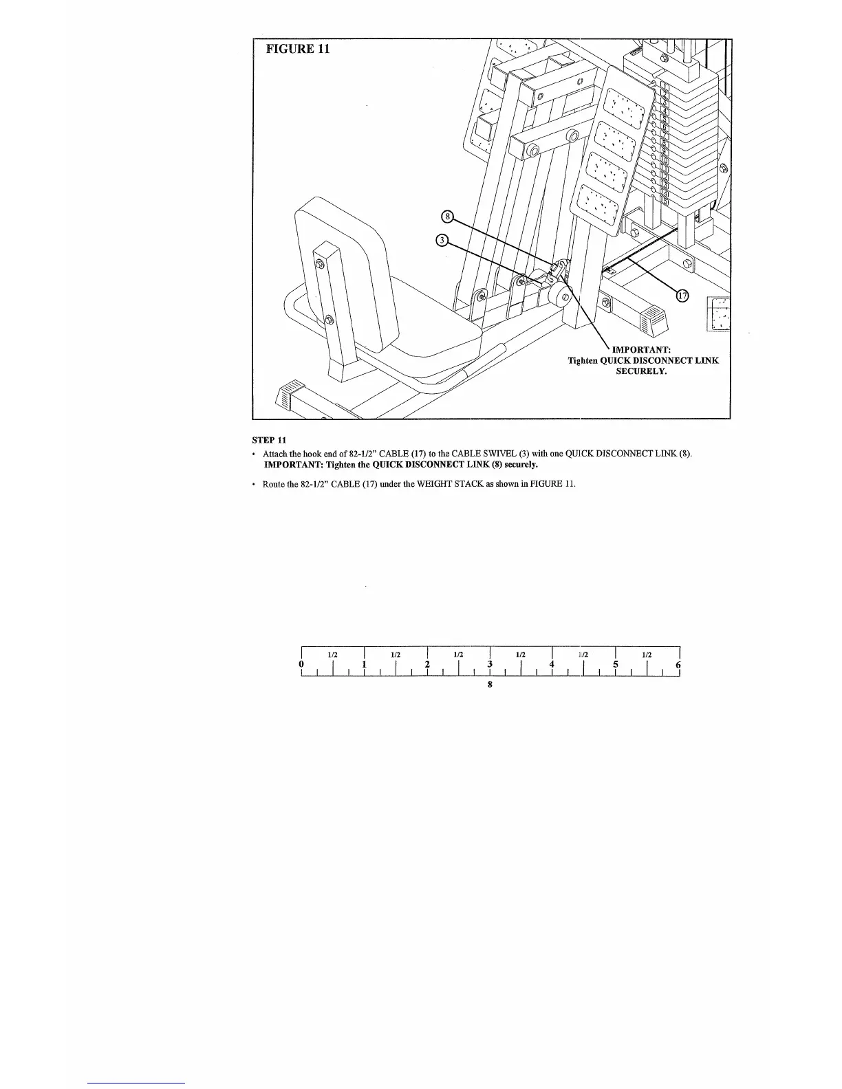 ¯ Route the 82-1/2" CABLE (17) under the WEIGHT STACK as shown in FIGURE 11.