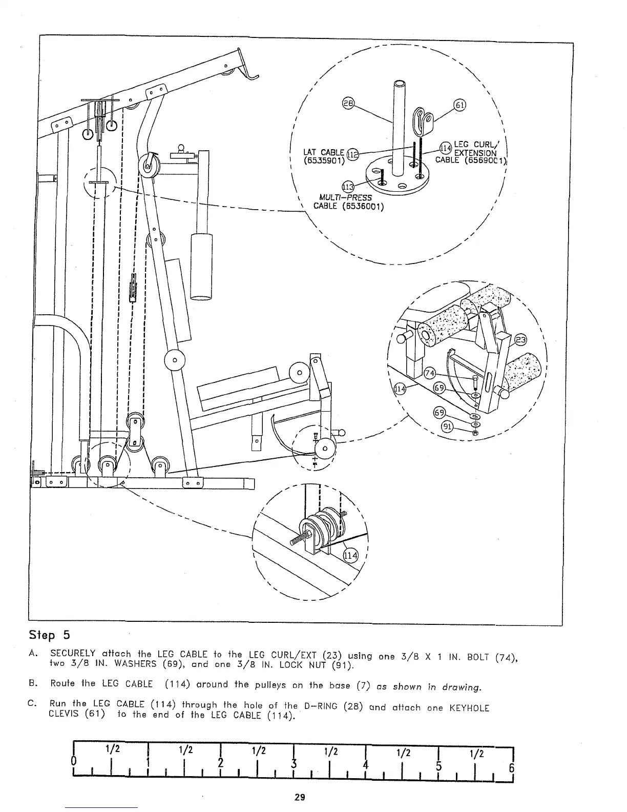 SECURELY affach ~he LEG CABLE to the LEG CURL/EXT (23) using one 5/8
