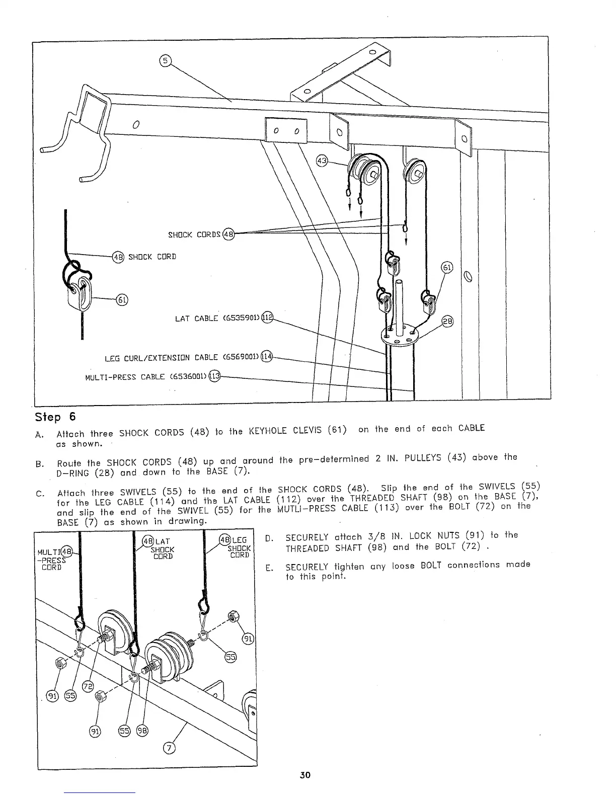 Rou].e the SHOCK CORDS (48) up and around the pre-determ;ned 2 IN. PULLEYS (43) above