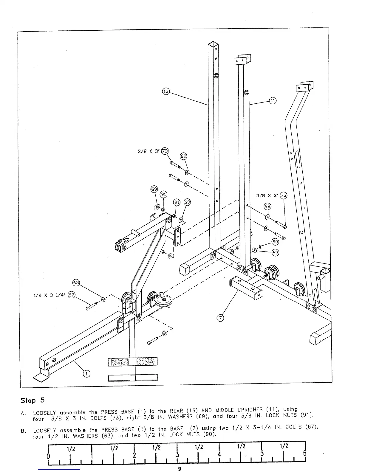 A. LOOSELY assemble fhe PRESS BASE (1) to the REAR (15) AND MIDDLE UPRIOHTS (11),using