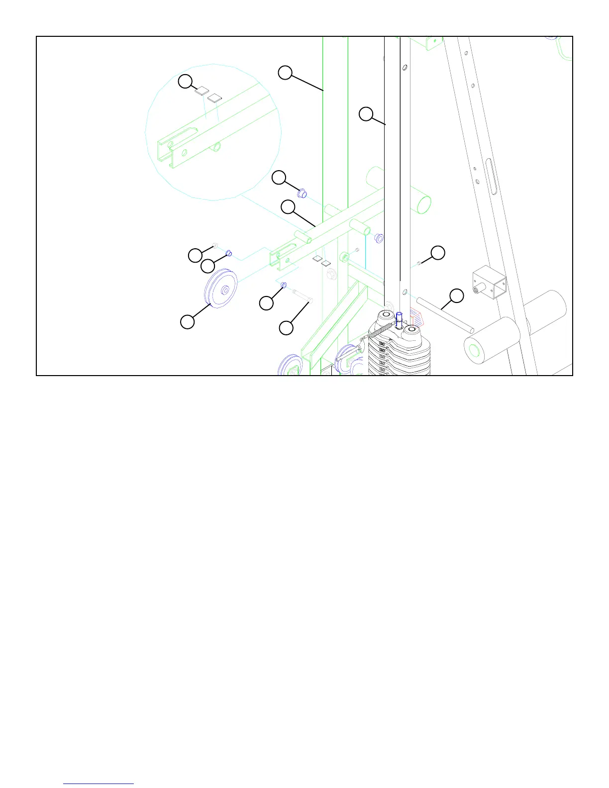 • Hold the COUNTER LEVER (3) between the REAR (4) and MIDDLE UPRIGHTS (8) and slide the 3/4 DIA X 11” SHAFT (107) throught