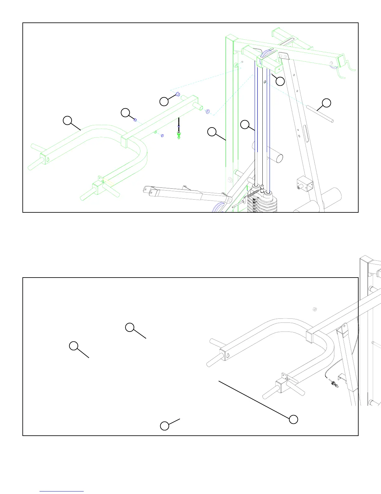 • Hold the PRESS ARM (27) between the REAR (4) and MIDDLE UPRIGHTS (8) and slide the 3/4 DIA X 11” SHAFT (107) throught