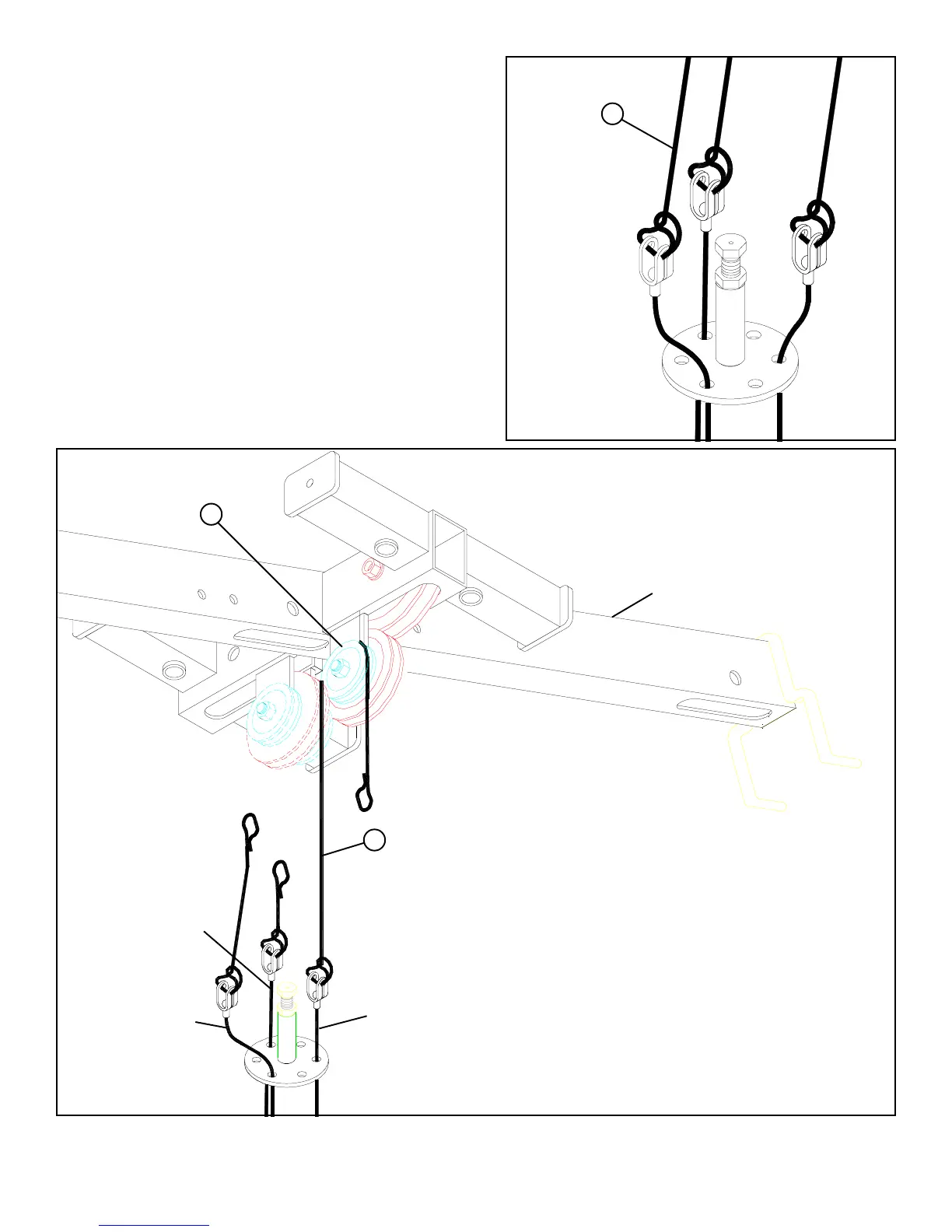 • Assemble the 72” ELASTIC CORD (67) from the PRESS CABLE around the 2” PULLEY (69) in the TOP BOOM as shown in FIGURE