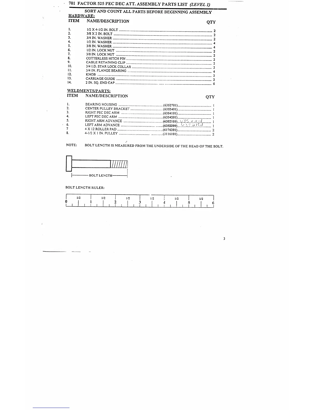 701 FACTOR 525 PEC DEC ATT. ASSEMBLY PARTS LIST (LEVEL 1)