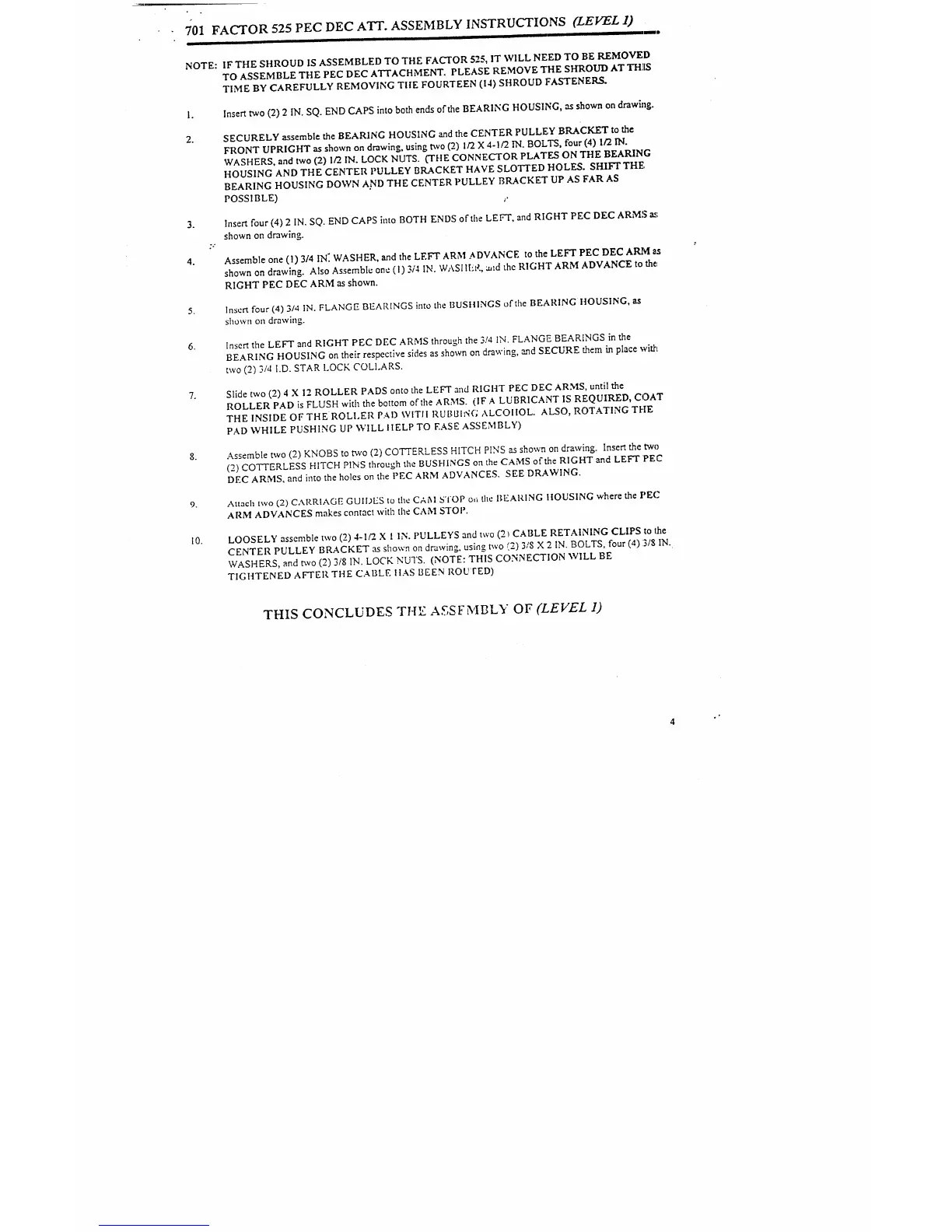 FACTOR 525 PEC DEC ATT. ASSEMBLY INSTRUCTIONS (LEVEL 1) ,--.
