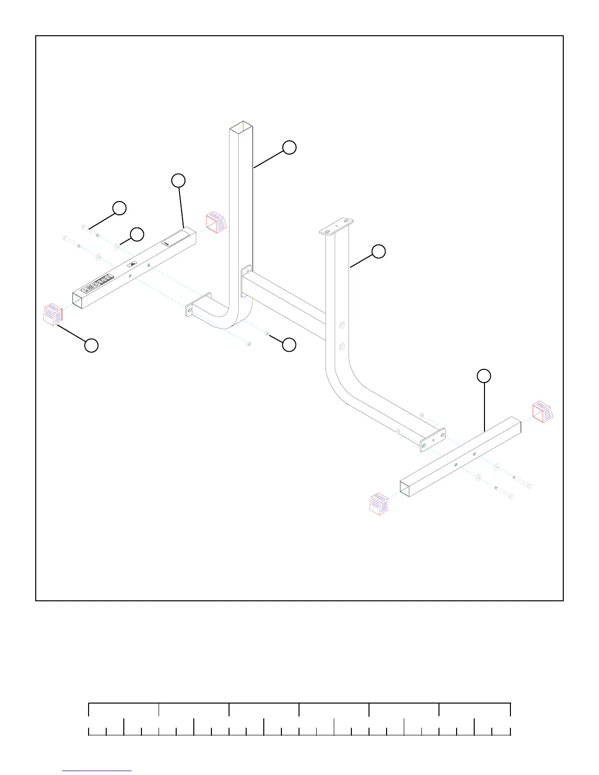 SECURELY assemble the BASE TUBES (2) to the FRONT and REAR UPRIGHTS (5 & 6) using four 1/2 X 3”