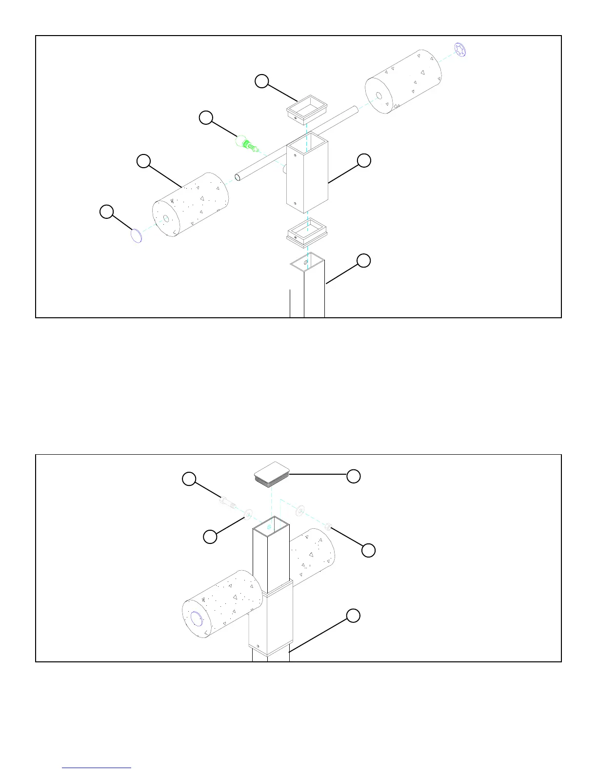 • Insert two 3 X 2” INSERT GUIDES (21) into the end of each of the ROLLER PAD SUPPORT (1) as shown in