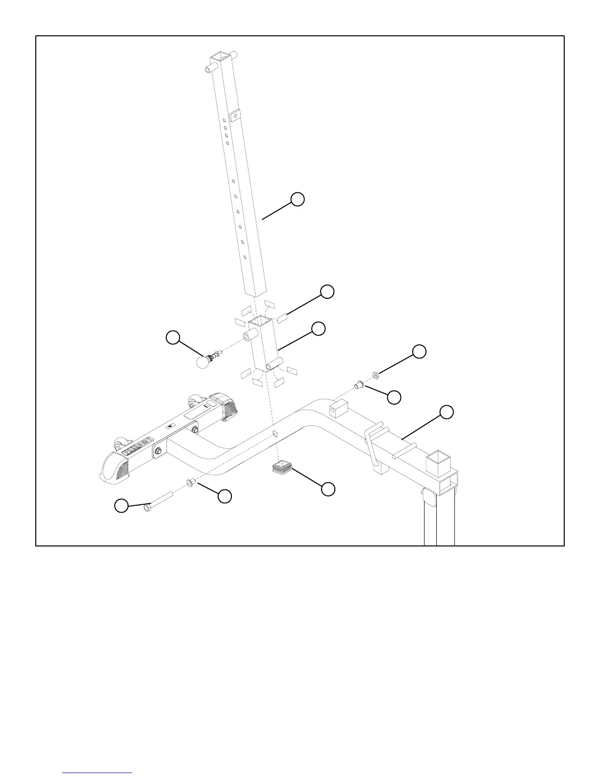 • Assemble the ADUSTABLE SLEEVE (3) to the BENCH FRAME (1) using one 1/2 X 3-3/4” BOLT (21), two 1/2” FLANGE SPACERS (27),
